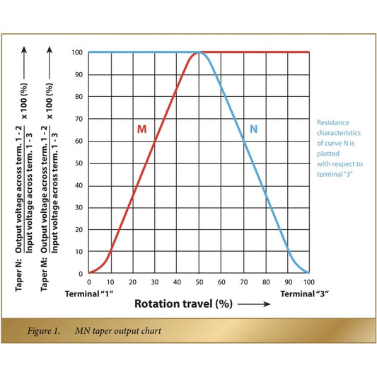 Left Hand or Reverse Taper Potentiometer 250 kohm - 500 kohm - 24 Spline SKU:Code:WDPLH-500-1