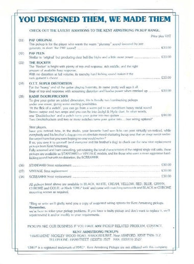 Kent finished college in the UK in ’75. While he had already worked with Dan in his shop in New York (being trained up by the legendary Bill Lawrence), Kent knew that he needed his own income. After working with Dan on the Dan Armstrong London guitars, Kent set up his own business in Brighton. On top of fixing and rewinding pickups, he would design and build his own pickup range. In ’78 he set up a company with the name of Rainbow Products.