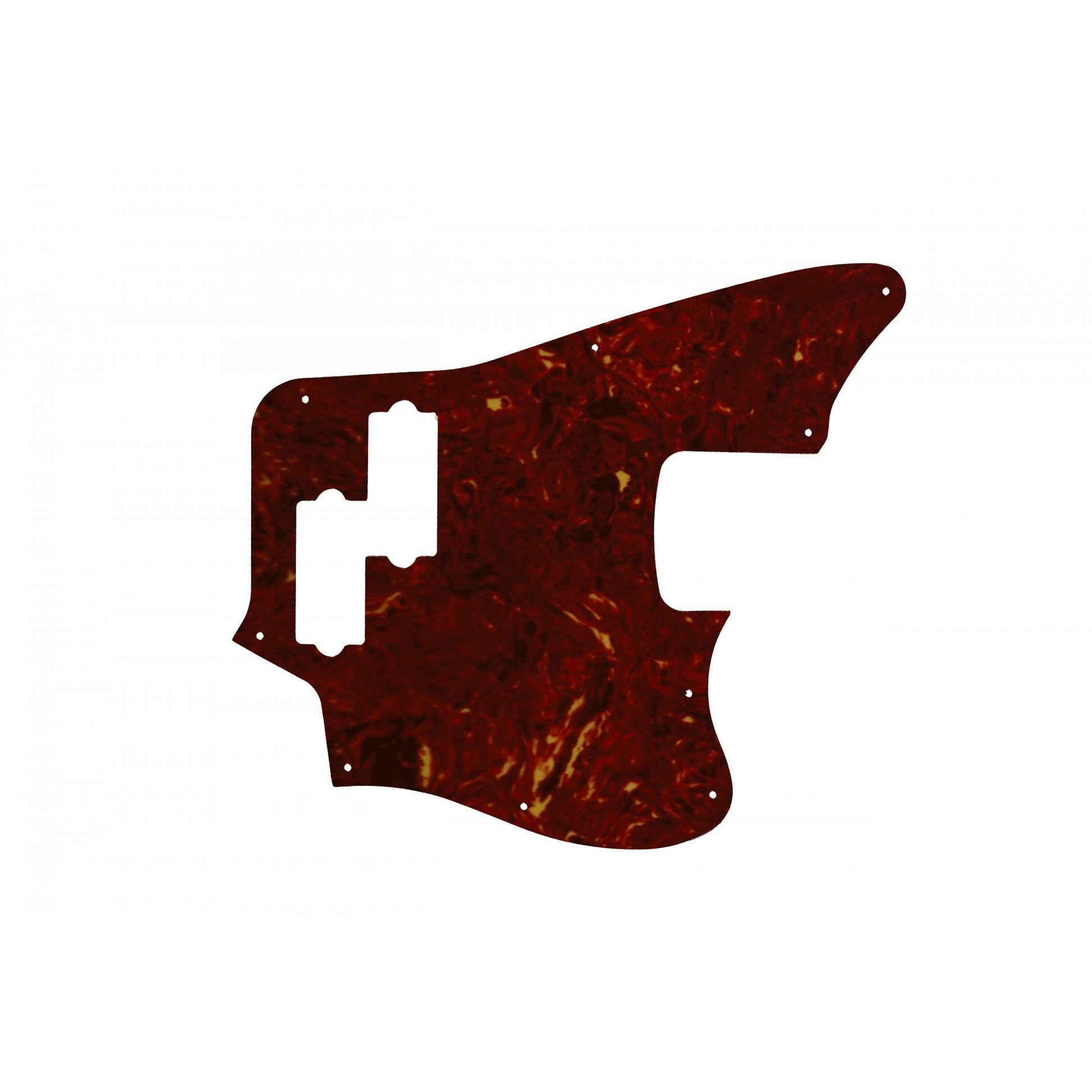 This pickguard is designed to fit a 2018 Player Series Jaguar Bass model only. Light brown tortoiseshell (with a hint more red to the overall colour compared to the dark brown tortoiseshell that we sell) celluloid top layer with a PVC White / Black / White laminate underneath. Comes with a peel-off clear protective film attached to top side to protect the surface during cutting and installation. We are unable to accept returns if this clear film has been removed.
