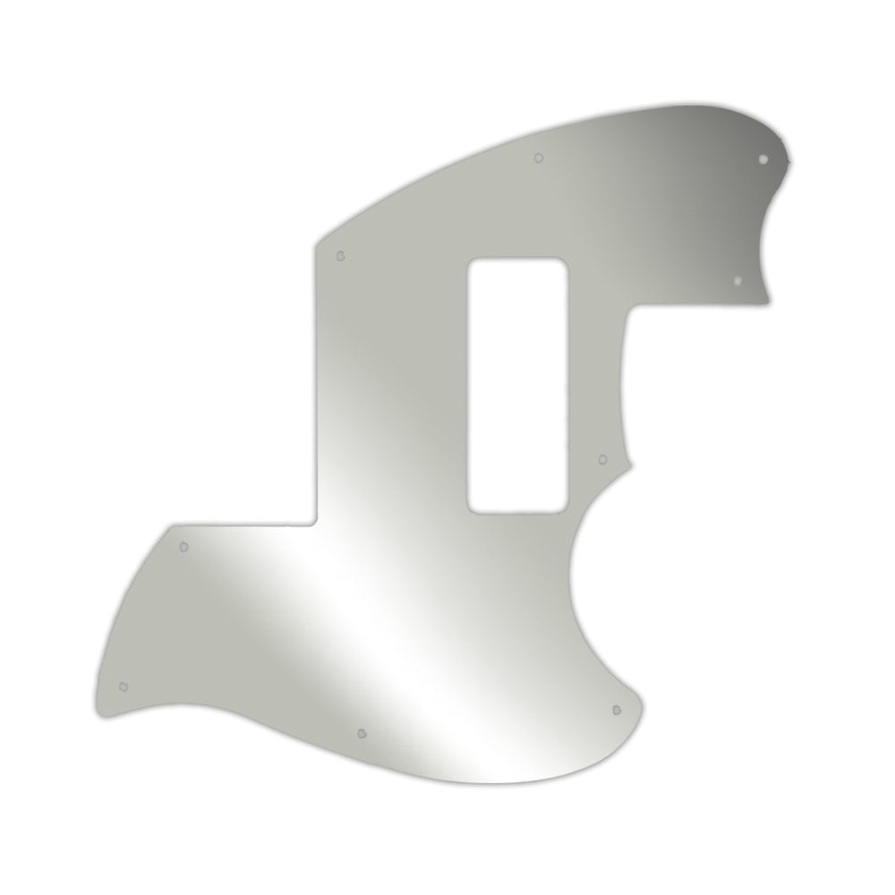 This pickguard is made from silver mirror - a clear acrylic material measuring .118" / 2.99mm thick with a 45 degree bevelled edge. The silver reflective layer is attached to the underside of the acrylic, preventing it from getting scratched or dented once it is fitted to the instrument.