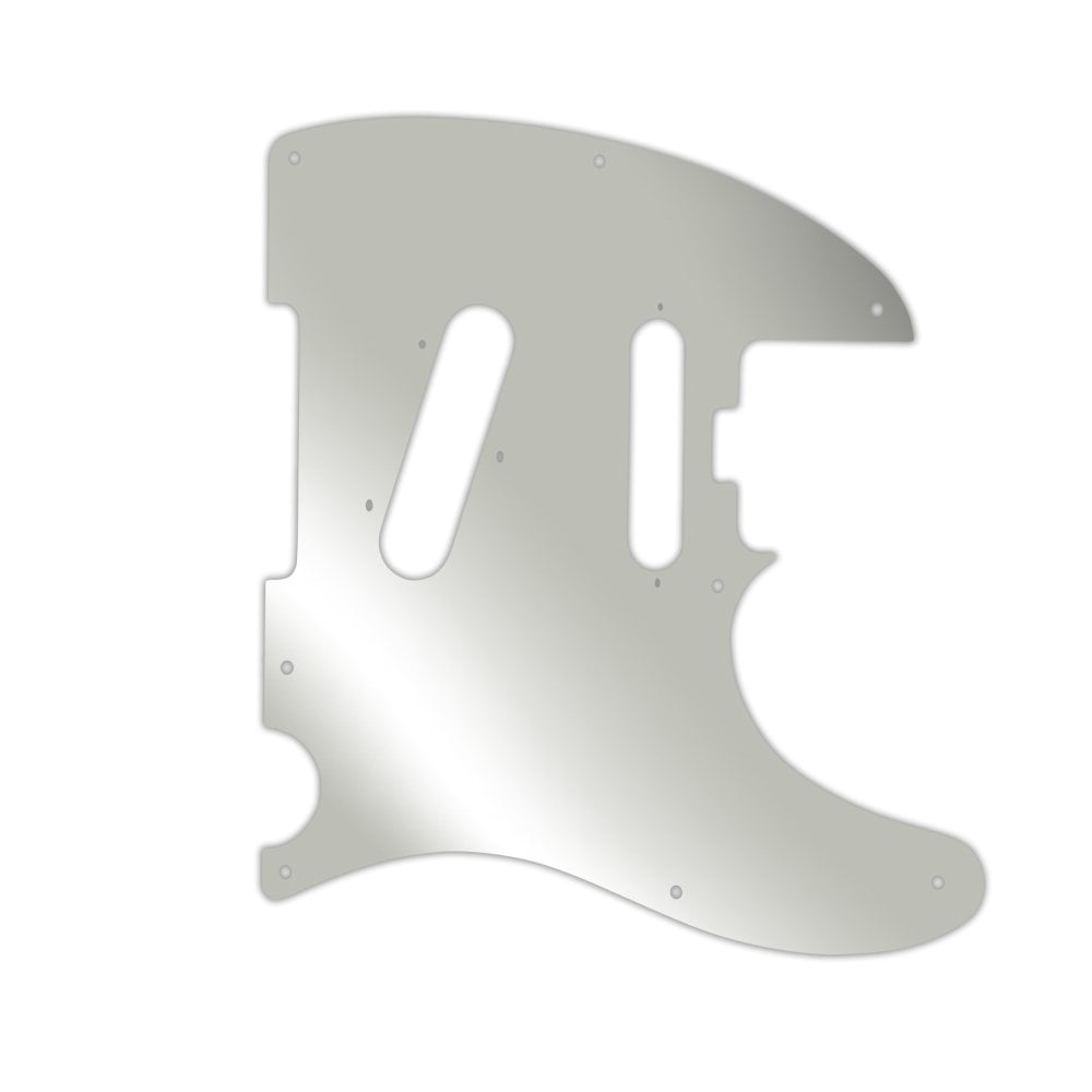 This pickguard is made from silver mirror - a clear acrylic material measuring .118" / 2.99mm thick with a 45 degree bevelled edge. The silver reflective layer is attached to the underside of the acrylic, preventing it from getting scratched or dented once it is fitted to the instrument.
