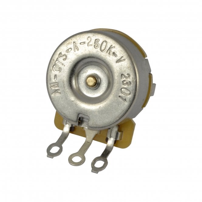 Audio (log) taper. Ideal volume and tone controls for instruments with singlecoil pickups. CTS pots have been used on Fender guitars for years. Split shaft for push-fit knobs.