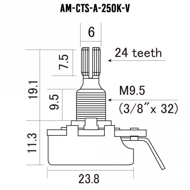 Our CTS pots are the top-of-the-line 450 series and a lot of the competition that stock CTS tend not to carry the top-spec. ones that we have. The 450 Series feature a brass bushing and shaft, a custom taper for greater accuracy, +/- 10% tolerance for greater consistency and a graphite wiper. These are developed using a ±9% tolerance and rated at 250k. Complete with two nuts and washers.