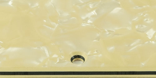 Made from 4 ply cream pearloid / cream / black /cream plastic material, 2.8mm thick. With 45 degree bevelled edge.
