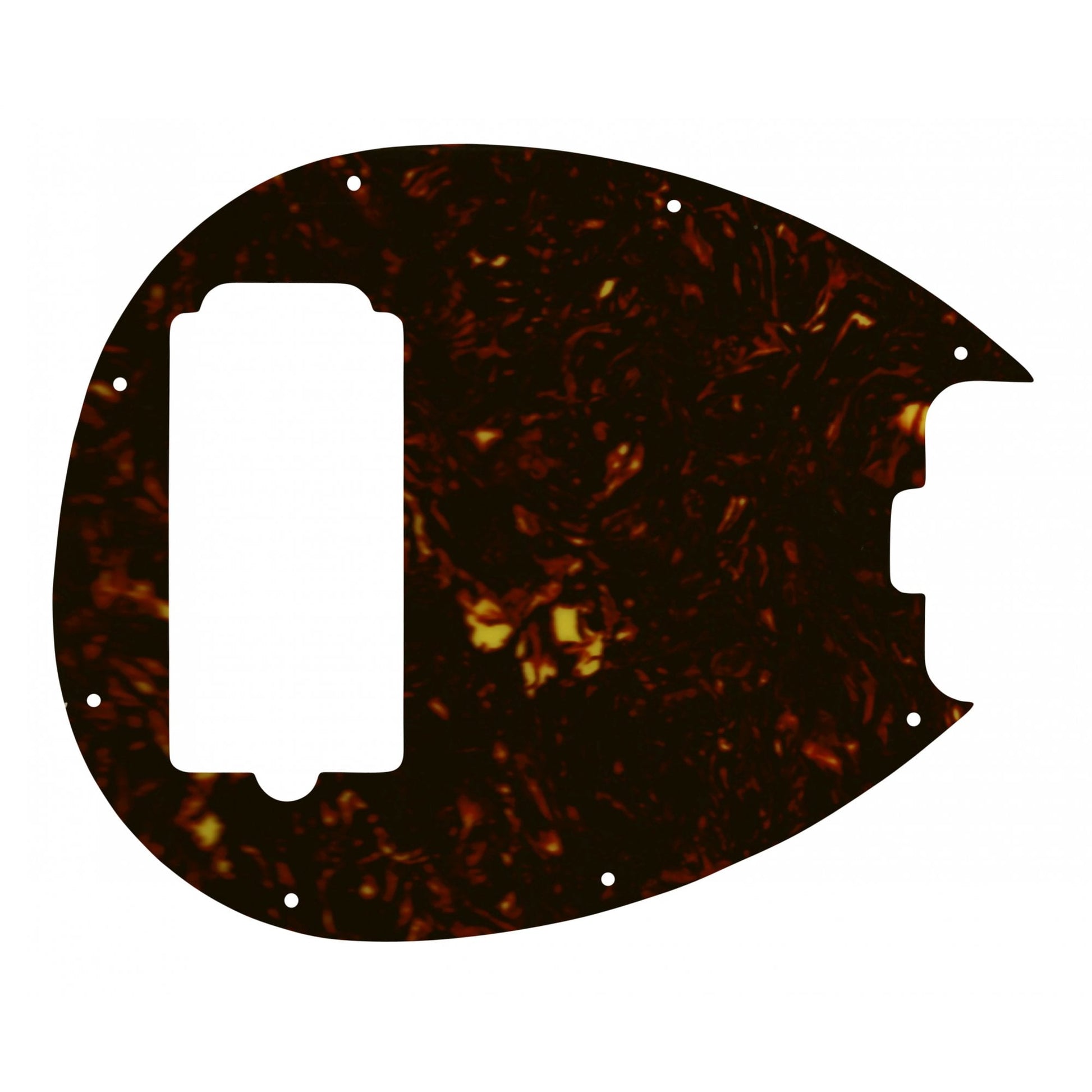 This replacement pickguard is made specifically for the Sterling H 5 String Bass, cut with one Humbucker in the bridge position. Dark brown tortoiseshell celluloid top layer with a PVC White / Black / White laminate underneath. Comes with a peel-off clear protective film attached to top side to protect the surface during cutting and installation. We are unable to accept returns if this clear film has been removed.Ê