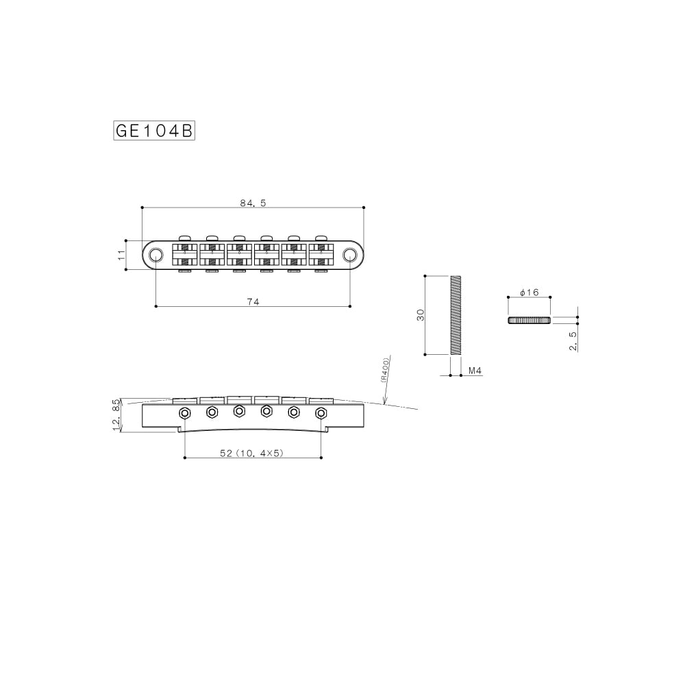 The saddles on this Gotoh bridge are held in place with a nut and bolt that is attached with a chemical thread locking compound to prevent the assembly from loosening. This ensures that the saddles sit firmly on the bridge, providing smooth intonation adjustment and eliminating the typical saddle "wobble" that occurs on most original tune-o-matic ABR-1 bridges. However, this design means that removing and replacing the saddles can be very difficult and may result in damaging the screw heads and scratching the bridge unit. It is possible to successfully remove the bond with the correct methods and tools but we recommend taking the bridge and replacement saddles to a qualified guitar luthier who can carry the work out for you.