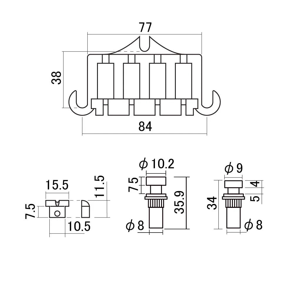 This 3 Point Bass Bridge by Hosco is designed with the traditional Gibson style bridge in mind, using individually intonatable saddles and 3 point adjustable bridge posts. The 8 mm metric thread is compatible with Epiphone instruments (such as the Epiphone EB-3 model) and won't fit Gibson USA instruments. Made in Japan for quality and precision.