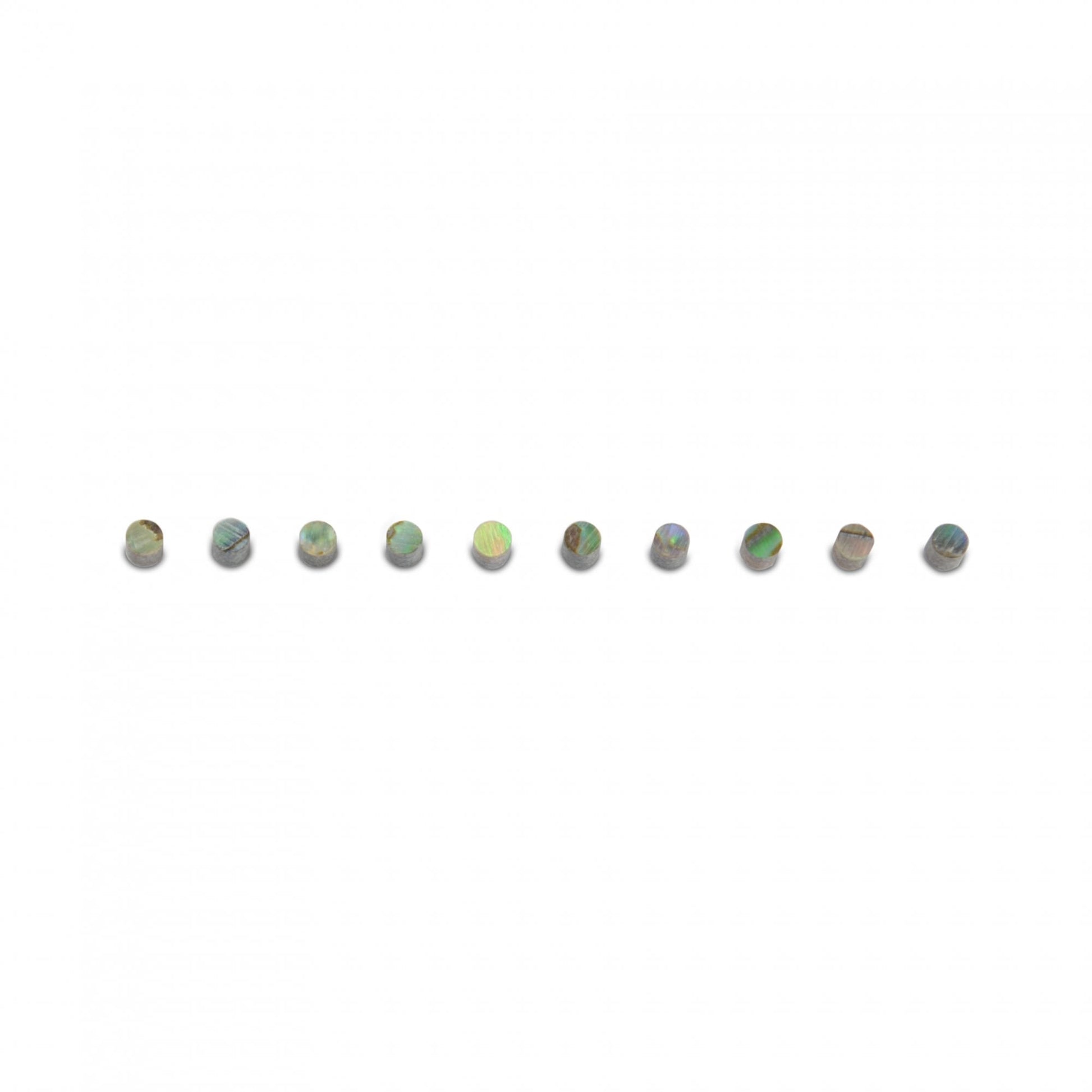 Set of 10 Abalone Dot Markers for fretboards. 2mm diameter. 2mm thickness.