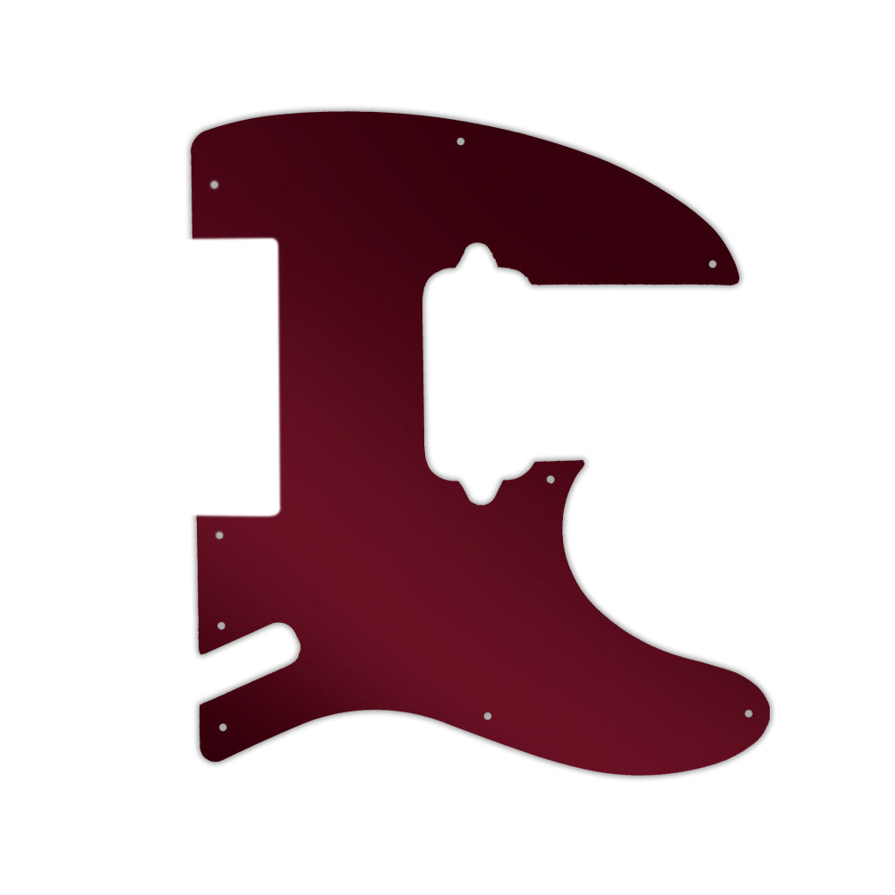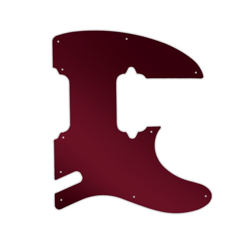 This pickguard is made from red mirror - a clear acrylic material measuring .118" / 2.99mm thick with a 45 degree bevelled edge. The red reflective layer is attached to the underside of the acrylic, preventing it from getting scratched or dented once it is fitted to the instrument.