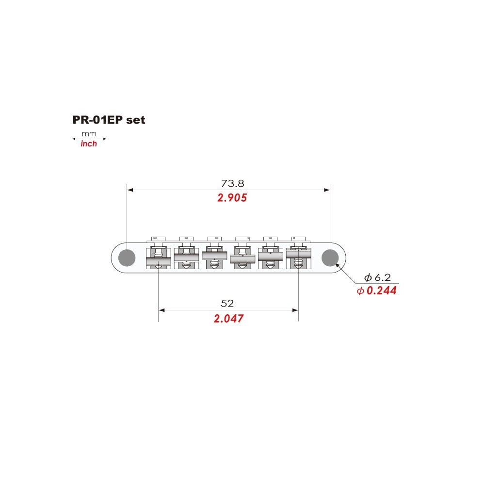 PR-01 EP titanium saddles are pre-assembled on a zinc die cast base. Epiphone bridges are manufactured by several different factories in several Asian countries, so there are some spec. variations for many models. Therefore KTS decided to prepare the bridge with pre-installed Titanium saddles on a Korean-made Epiphone bridge which will fit on any Epiphone guitars. Thumb wheels and mounting posts included.