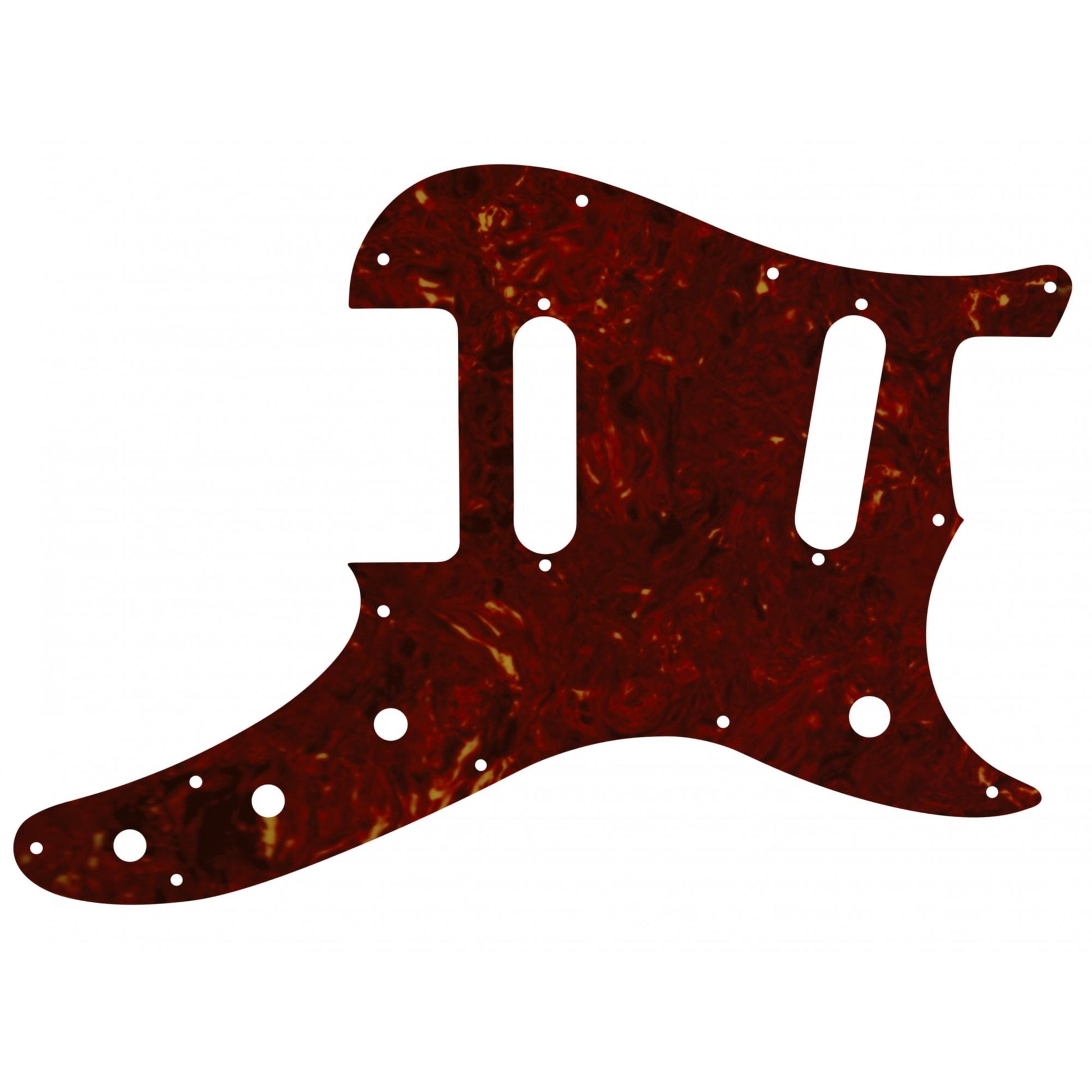 This replacement pickguard is made to fit the Fender Duosonic Offset SS model. Light brown tortoiseshell (with a hint more red to the overall colour compared to the dark brown tortoiseshell that we sell) celluloid top layer with a PVC White / Black / White laminate underneath. Comes with a peel-off clear protective film attached to top side to protect the surface during cutting and installation. We are unable to accept returns if this clear film has been removed.
