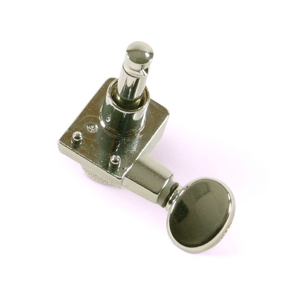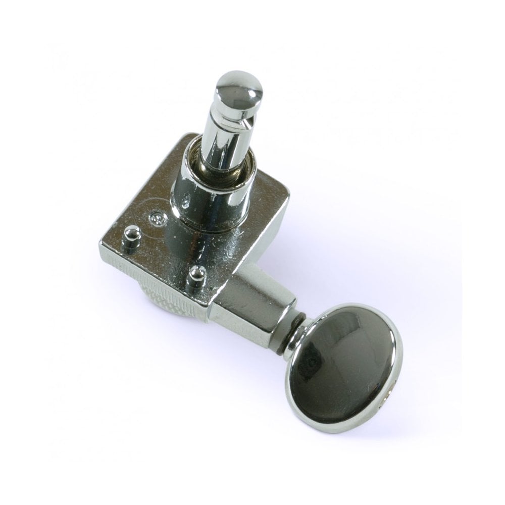 Kluson contemporary locking tuners designed for contemporary Fender American Standard and Standard series instruments that utilize the 2 discreet location pins instead of mounting screws. Kluson has incorporated the user-friendly locking system that is located on the back of the tuner housing utilizing a knob for simple twist-to-lock or release. This drop-in, no modification required design is an upgrade to your factory tuning machines in appearance, gear ratio and design. Uses the common modern 25/64 in. (10mm) peghole with a hex head type screw-in bushing and no mounting screws! All mounting hardware is included.