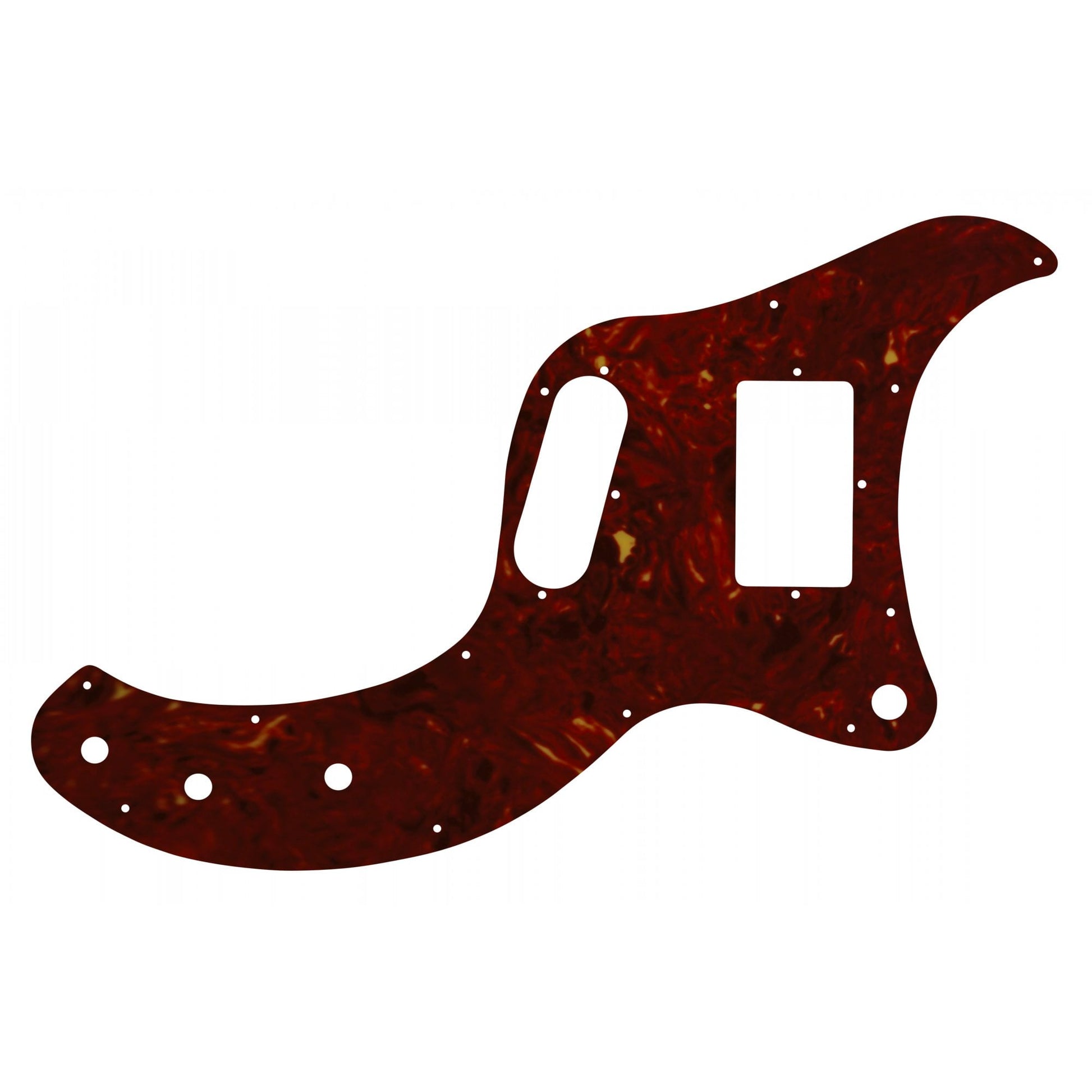 This Gibson Marauder pickguard will only fit a genuine and original Gibson Marauder. This pickguard will not fit Epiphone and there is currently no reissue template available for this instrument. Light brown tortoiseshell (with a hint more red to the overall colour compared to the dark brown tortoiseshell that we sell) celluloid top layer with a PVC White / Black / White laminate underneath. Comes with a peel-off clear protective film attached to top side to protect the surface during cutting and installation. We are unable to accept returns if this clear film has been removed.