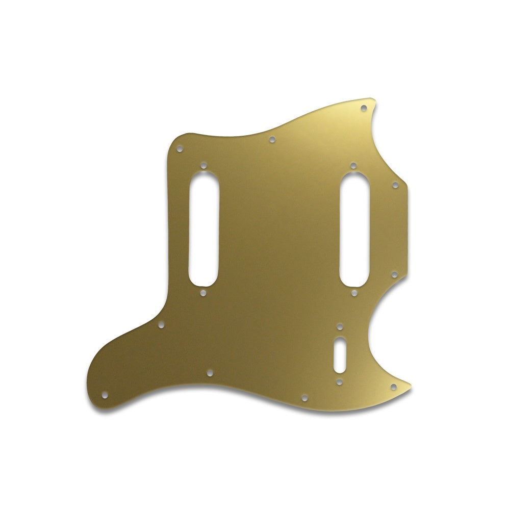 This pickguard is made from gold mirror - a clear acrylic material measuring .118" / 2.99mm thick with a 45 degree bevelled edge. The gold reflective layer is attached to the underside of the acrylic, preventing it from getting scratched or dented once it is fitted to the instrument.