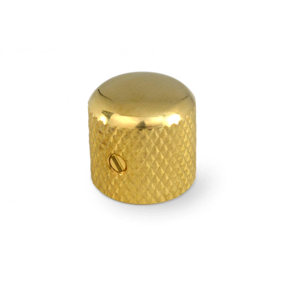Knurled dome brass knob, commonly found on Telecaster guitars. Available in chrome, black, gold or unplated brass options. The knob comes complete with a slotted adjusting grub screw to secure it to the pot shaft. 1/4" hole size specifically for Solid Shaft CTS pots but can also fit on smaller pot shafts with the use of the WDBPS5 brass sleeve. Also suitable for solid shaft CTS pots on USA Fender guitars. Sold individually.