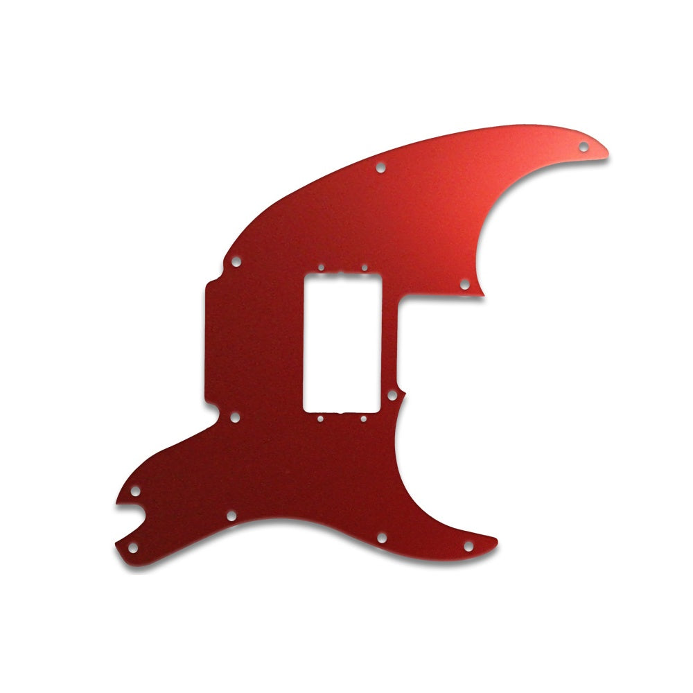 This pickguard is made from red mirror - a clear acrylic material measuring .118" / 2.99mm thick with a 45 degree bevelled edge. The red reflective layer is attached to the underside of the acrylic, preventing it from getting scratched or dented once it is fitted to the instrument.