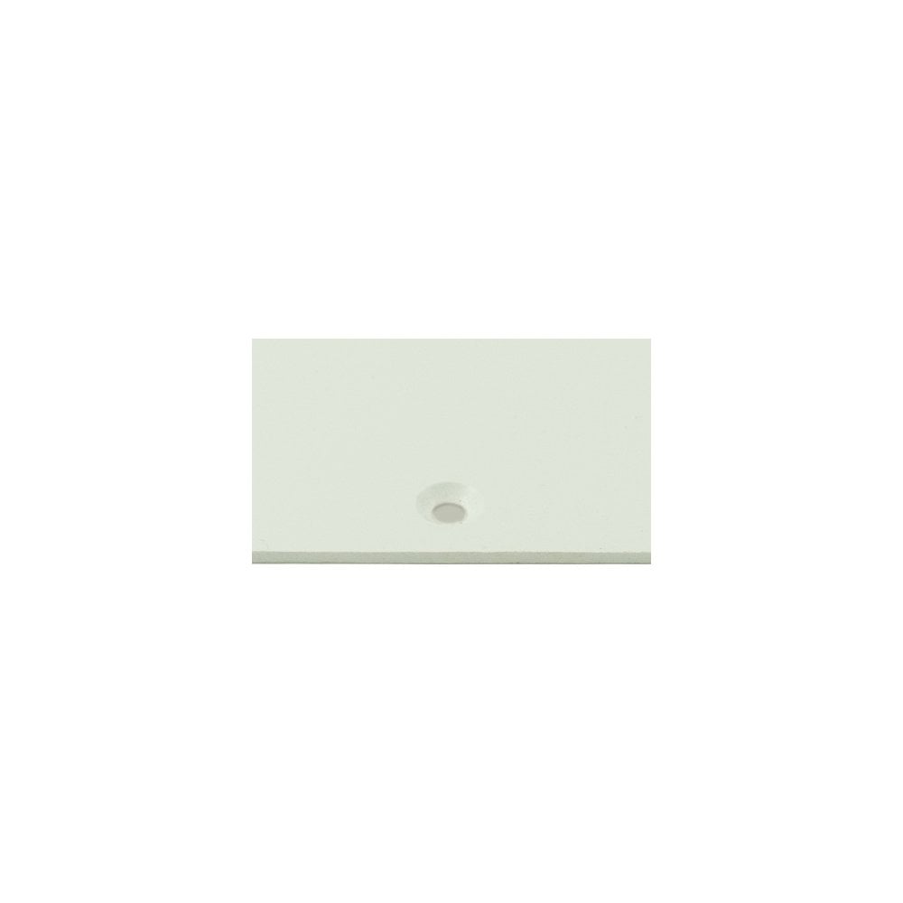 Made from shiny white plastic material, 1.5mm thick with a straight outer edge (no bevel).