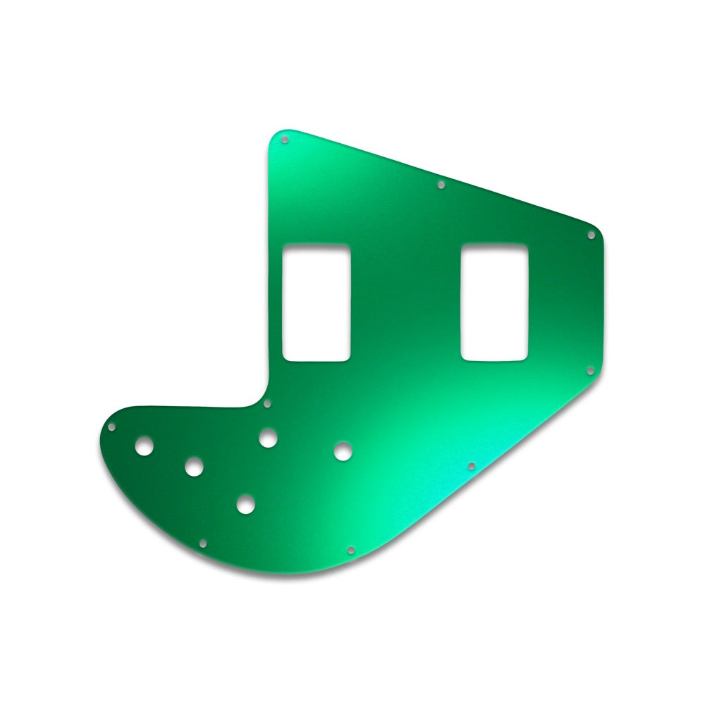 This pickguard is made from green mirror - a clear acrylic material measuring .118" / 2.99mm thick with a 45 degree bevelled edge. The green reflective layer is attached to the underside of the acrylic, preventing it from getting scratched or dented once it is fitted to the instrument.