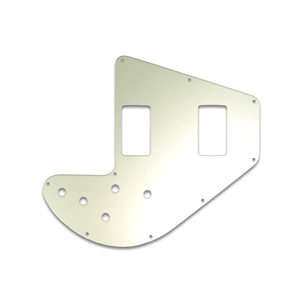 This pickguard is made from silver mirror - a clear acrylic material measuring .118" / 2.99mm thick with a 45 degree bevelled edge. The silver reflective layer is attached to the underside of the acrylic, preventing it from getting scratched or dented once it is fitted to the instrument.