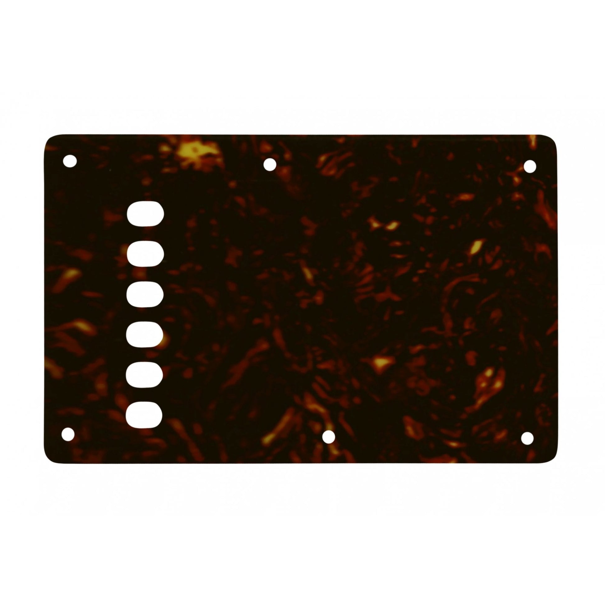 This vintage Stratocaster backplate comes with six oval holes for the strings to go through like the early Strat models from the 50's and 60's. It originally came in only thin material with no bevel, but over our thirty years, due to many requests, we supply it in all colours to match your Stratocaster. This backplate will only fit genuine Fender Stratocaster. It will not fit Squier. Dark brown tortoiseshell celluloid top layer with a PVC White / Black / White laminate underneath. Comes with a peel-off clear protective film attached to top side to protect the surface during cutting and installation. We are unable to accept returns if this clear film has been removed.Ê