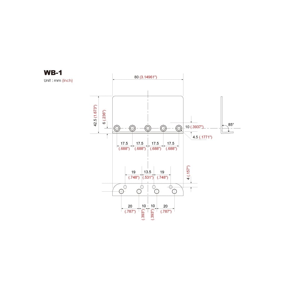 PR-03SPWB threaded Titanium Bass Bridge Saddles with WB1 Titanium Baseplate.